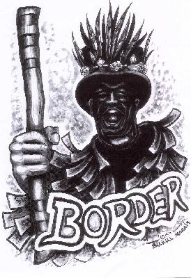 I need a cartoon image of a border morris dancers to use on posters. I really don't want to use a photo as any photo would be of an existing side and would have the wrong colour kit. A cartoon in black and white would not suffer from this problem and would also reproduce clearly and be visible from a distance.